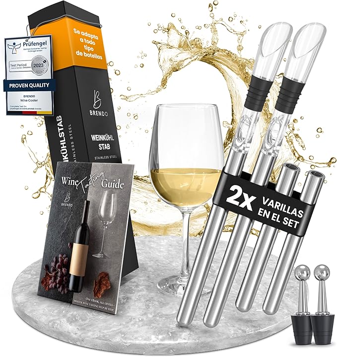 La gran promesa de este set es su versatilidad. No es solo un enfriador; es una navaja suiza para el vino, diseñada para convertir al aficionado en un experto sommelier doméstico. La clave de su justicia reside en su componente central: las varillas enfriadoras de acero inoxidable.